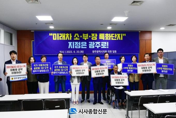 ÀÌ¿¡ ±¤ÁÖ±¤¿ª½ÃÀÇȸ ÀÇ¿ø Àϵ¿Àº 143¸¸ ½Ã¹Î°ú ÇÔ²² ±¤ÁÖ°¡ ¹Ì·¡ ÀÚµ¿Â÷ »ê¾÷ÀÇ ¼±µµ µµ½Ã·Î µµ¾àÇϱ⸦ °£ÀýÈ÷ ¿°¿øÇÏ¸ç ±¤ÁÖ ¹Ì·¡Â÷ ¼Ò․ºÎ․Àå Æ¯È´ÜÁö ÁöÁ¤À» °·ÂÈ÷ Ã˱¸ÇÑ´Ù.