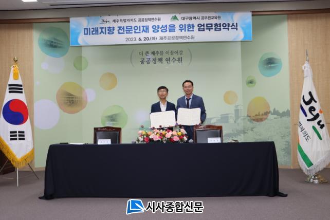 [½Ã»çÁ¾ÇսŹ® = °í¼º¹Î ±âÀÚ] Á¦ÁÖÆ¯º°ÀÚÄ¡µµ °ø°øÁ¤Ã¥¿¬¼ö¿ø(¿øÀå °½Âö)°ú ´ë±¸±¤¿ª½Ã°ø¹«¿ø±³À°¿ø(¿øÀå ¹æ±â¼º)ÀÌ 20ÀÏ ¹Ì·¡ÁöÇâ Àü¹®ÀÎÀç ¾ç¼ºÀ» À§ÇÑ ¾÷¹«Çù¾àÀ» ¸Î´Â´Ù.
