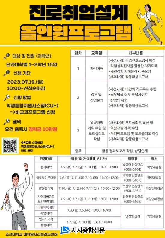 [½Ã»çÁ¾ÇսŹ® = ¿À½ÂÅà ±âÀÚ] Á¶¼±´ëÇб³ ´ëÇÐÀÏÀÚ¸®Ç÷¯½º¼¾ÅͰ¡ 7¿ù 3ÀϺÎÅÍ 14ÀϱîÁö ¡®2023 Áø·ÎÃë¾÷¼³°è ¿ÃÀοø ÇÁ·Î±×·¥¡¯À» ÁøÇàÇØ ´«±æÀ» ²ö´Ù.