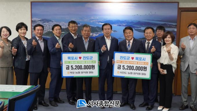 ¸ñÆ÷ ³óÇù(Á¶ÇÕÀå ¹ÚÁ¤¼ö)°ú ¼Áøµµ ³óÇù(Á¶ÇÕÀå °¼º¹Î) ÀÓÁ÷¿ø ´ëÇ¥ 10¿©¸íÀº Áö³ 21ÀÏ ¸ñÆ÷½Ãû¿¡¼ °íÇâ»ç¶û±âºÎ±Ý 520¸¸¿ø »óÈ£±âʽÄÀ» °¡Á³´Ù. À̳¯ ±âŹ½Ä¿¡¼ ¸ñÆ÷³óÇù ÀÓÁ÷¿ø 52¸íÀº Áøµµ±º¿¡, ¼Áøµµ³óÇù ÀÓÁ÷¿ø 52¸íÀº ¸ñÆ÷½Ã¿¡ °¢°¢ ±âºÎÇß´Ù.
