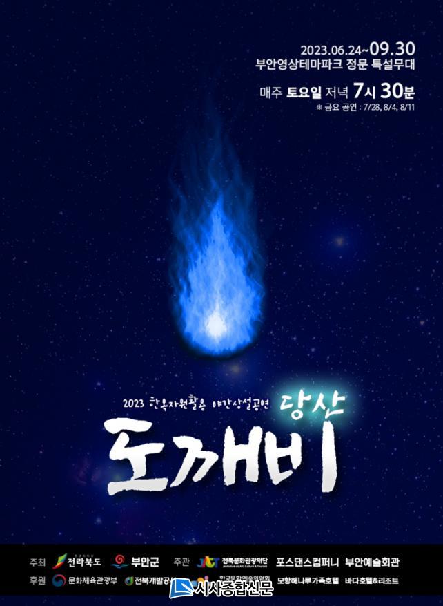 [½Ã»çÁ¾ÇսŹ® = ¿À½ÂÅà ±âÀÚ] 2023³â ÇÑ¿ÁÀÚ¿øÈ°¿ë ¾ß°£»ó¼³°ø¿¬ °ø¸ð»ç¾÷¿¡ ¼±Á¤µÈ¡®ºÎ¾È µµ±úºñ¡¯´Â 6¿ùºÎÅÍ 9¿ù±îÁö º¯»ê¸é ºÎ¾È¿µ»óÅ׸¶ÆÄÅ©¿¡¼ ¸ÅÁÖ Åä¿äÀÏ ÃÑ18ȸ °ø¿¬ÇÑ´Ù. ÀÌ °ø¿¬Àº Àü¶óºÏµµ¹®È°ü±¤Àç´ÜÀÌ ÁÖ°üÇÏ°í ºÎ¾È±º°ú ºÎ¾È¿¹¼úȸ°ü °ø¿¬Àå »óÁÖ´ÜüÀÎ Æ÷½º´í½ºÄÄÆÛ´ÏÀÇ ÁÖÃÖÇÑ´Ù.