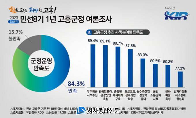 ¹Î¼±8±â °íÈﱺÀÌ ±ºÁ¤ ¿î¿µÀ» ÀßÇÏ´ÂÁö¿¡ ´ëÇÑ Áú¹®¿¡ ¡®ÀßÇϰí ÀÖ´Ù¡¯´Â ±àÁ¤ Æò°¡´Â 84.3%·Î ³ôÀº ¸¸Á·µµ¸¦ ³ªÅ¸³½ ¹Ý¸é, ¡®Àß ¸øÇϰí ÀÖ´Ù¡¯¶ó´Â ºÎÁ¤ Æò°¡´Â 15.7%¿¡ ±×ÃÆ´Ù.