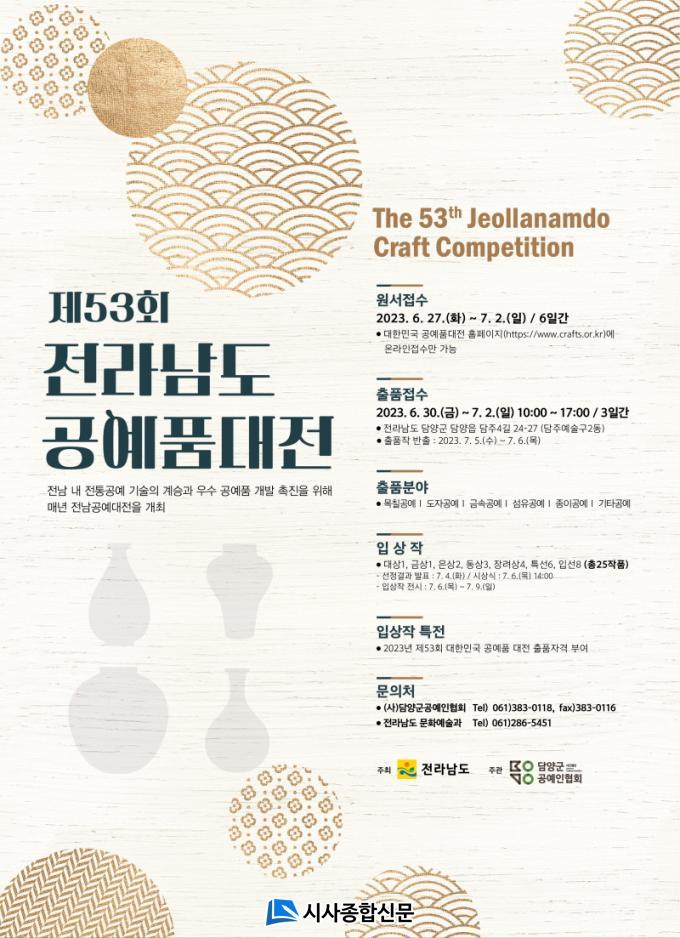 Á¦53ȸ Àü³²µµ °ø¿¹Ç° ´ëÀü¿¡ ´ëÇÑ ÀÚ¼¼ÇÑ »çÇ×Àº Àü³²µµ ´©¸®Áý ¡®°í½Ã¡¤°ø°í¡¯¸¦ Âü°íÇϰųª Àü³²µµ ¹®È¿¹¼ú°ú(061-286-5451), (»ç)´ã¾ç±º°ø¿¹ÀÎÇùȸ(061-383-0118)·Î ¹®ÀÇÇÏ¸é µÈ´Ù.