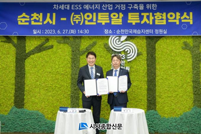 ¼øÃµ½Ã´Â(½ÃÀå ³ë°ü±Ô) 27ÀÏ ESS Àü¹®±â¾÷ÀÎ ¢ßÀÎÅõ¾Ë°ú ÅõÀÚ¾× 175¾ï ¿ø, °í¿ëÀοø 100¸í ±Ô¸ðÀÇ ÅõÀÚÇù¾à½ÄÀ» °¡Á³´Ù. 2002³â¿¡ ¼³¸³µÈ ¢ßÀÎÅõ¾ËÀº ÃÖ÷´Ü ³×Æ®¿öÅ© ․ Åë½Å±â±â ÀåºñµéÀ» °ü¸® ÇÒ ¼ö Àִ ijºñ³Ý·¢, ¿Á¿Ü¿ë ÇÔü·¢ µîÀ» Á¦Á¶ÇÏ´Â ¾ËÅä¶õ °°Àº ±â¾÷À¸·Î 2016³âºÎÅÍ´Â ESS(¿¡³ÊÁö ÀúÀåÀåÄ¡, Energy Storage System) ºÐ¾ß·Î ¿µ¿ªÀ» È®´ëÇÑ ÈÄ¿¡ ±Þ¼ºÀåÇϰí ÀÖ´Ù.