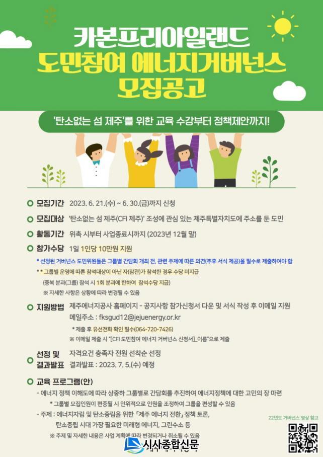 [½Ã»çÁ¾ÇսŹ® = °í¼º¹Î ±âÀÚ] Á¦ÁÖ¿¡³ÊÁö°ø»ç(»çÀå ±èÈ£¹Î)´Â Á¦ÁÖÆ¯º°ÀÚÄ¡µµ°¡ ÃßÁøÇϰí ÀÖ´Â Ä«º»ÇÁ¸®¾ÆÀÏ·£µå 2030(Carbon Free Island Jeju by 2030; ÀÌÇÏ ¡®CFI¡¯¶ó ÇÔ) ½ÇÇöÀ» À§ÇØ µµ¹ÎÂü¿© ¿¡³ÊÁö °Å¹ö³Í½º Âü°¡ÀÚ¸¦ 6¿ù 30ÀϱîÁö ¸ðÁýÇÑ´Ù°í ¹àÇû´Ù.