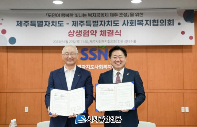 Á¦ÁÖµµ´Â 29ÀÏ ¿ÀÀü 11½Ã 30ºÐ Á¦ÁÖ»çȸº¹ÁöÇùÀÇȸ ȸÀǽǿ¡¼ ©ÅÁ¦ÁÖµµ »çȸº¹ÁöÇùÀÇȸ¿Í µµ¹Î º¹ÁöÁõÁøÀ» À§ÇÑ »ó»ýÇù¾àÀ» ü°áÇß´Ù. À̳¯ Çù¾à½Ä¿¡´Â ¿À¿µÈÆ Áö»ç, °í½ÂÈ Á¦ÁÖµµ »çȸº¹ÁöÇùÀÇȸÀåÀ» ºñ·ÔÇØ µµ³» 17°³ »çȸº¹Áö Á÷´É´ÜüÀåÀÌ Âü¼®Çß´Ù.