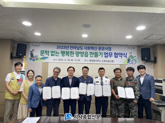 À̳¯ Çù¾à½Ä¿¡´Â ±¤¾çÀ¾Áö¿ª»çȸº¸ÀåÇùÀÇü¿Í ±¤¾ç½Ã ±¤¾çÀå¾ÖÀκ¹Áö°ü(°üÀå ÀÌ¿µÀç). (»ç)±¤¾ç½ÃÀÚÀ²¹æ¹ü¿¬ÇÕȸ(ȸÀå ½Å¿í¹è), ±¤¾ç½ÃÇØº´´ëÆÈ°¢È¸(ȸÀå Á¤¿µ¼ö) µî Çù¾à±â°ü 5°³ ±â°ü ․ ´Üü¸¦ ºñ·ÔÇÑ ±¤¾ç½ÃÀÇȸ ¹Ú¹®¼· ÀÇ¿ø°ú ÃÖ´ë¿ø ÀÇ¿ø µîÀÌ Âü¼®Çß´Ù.