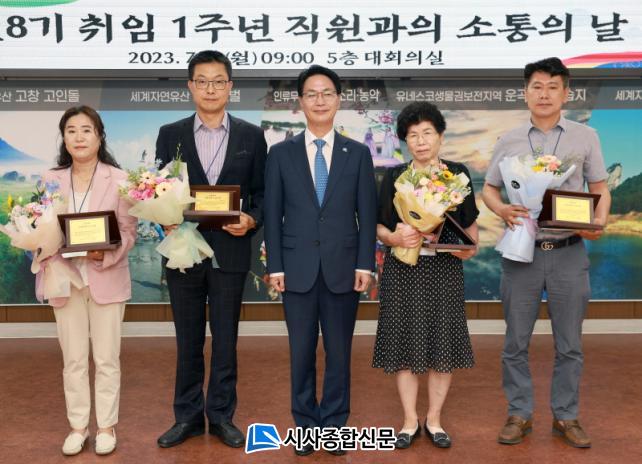 [½Ã»çÁ¾ÇսŹ® = ¿À½ÂÅà ±âÀÚ] °íⱺÀÌ Áö¹æ¼¼¸¦ ¼º½ÇÈ÷ ³³ºÎÇØ ÀÚÁÖÀç¿ø È®º¸¿¡ ±â¿©ÇÑ ¸ð¹ü³³¼¼ÀÚ °³ÀÎ 8¸í¿¡°Ô Àü¶óºÏµµ °¨»çÆÐ¸¦, ÀÌÁß °øÀûÀÌ °¡Àå Å« 1¸í(À̼®ÁÖ)¿¡°Ô´Â ǥâÀåÀ» Àü´ÞÇß´Ù.