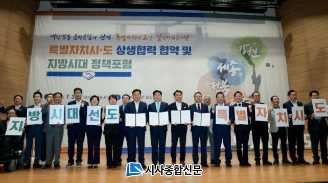 ±èÁøÅ °¿øÆ¯º°ÀÚÄ¡µµÁö»ç´Â ¡°4°³ Ưº°ÀÚÄ¡½Ã․µµ Àα¸¸¦ ´Ù ÇÕÄ¡¸é 434¸¸À̰í, ÃâÇ⠽õµ¹Î±îÁö ÇÕÄ¡¸é 800¸¸¿¡ À°¹ÚÇÏ´Â ¸¸Å ¿ì¸®°¡ ¹¶Ä¡¸é ¸øÇÒ °ÍÀÌ ¾ø´Ù¡±°í Çß°í, ±è°ü¿µ ÀüºÏÁö»ç´Â ¡°4°³ÀÇ Æ¯º°ÀÚÄ¡½Ã․µµ°¡ Çϳª·Î ¿¬´ëÇØ¼ ³ë·ÂÇÑ´Ù¸é ´ëÇѹα¹ Áö¹æ½Ã´ëÀÇ »õ·Î¿î ¿ª»ç¸¦ ½á³ª°¥ °Í¡±À̶ó°í °Á¶Çß´Ù. °í±âµ¿ ¼¼Á¾Æ¯º°ÀÚÄ¡½Ã ºÎ½ÃÀåÀº ¡°±×µ¿¾È ȹÀÏÀûÀÎ ¹ý·ü ÅëÁ¦¸¦ ¹þ¾î³ª Ưº°ÇÑ ÁöÀ§¸¦ °¡Áø Áö¹æÁ¤ºÎ°¡ ¿¬´ë¿Í Çù·ÂÀ» ±»°ÇÈ÷ ÇÏ´Â ³¯¡±À̶ó°í °Á¶Çß´Ù.