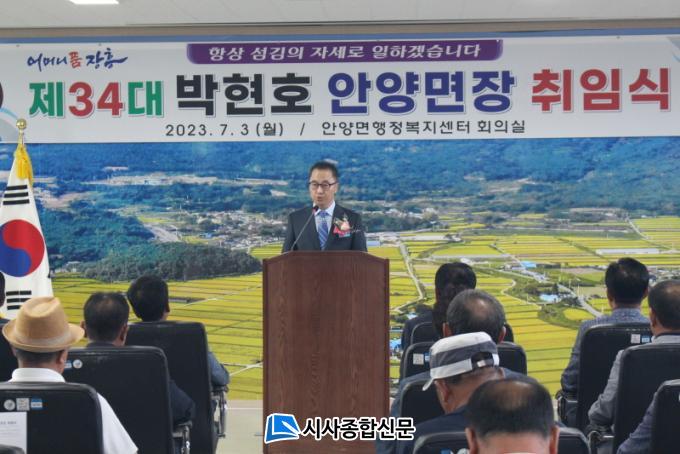 [½Ã»çÁ¾ÇսŹ® = ¿À½ÂÅà ±âÀÚ] ÀåÈﱺ ¾È¾ç¸é¿¡¼´Â Áö³ 7¿ù3ÀÏ ÇàÁ¤º¹Áö¼¾ÅÍ È¸Àǽǿ¡¼ Á¦34´ë ¹ÚÇöÈ£ ¾È¾ç¸éÀå ÃëÀÓ½ÄÀ» °¡Á³´Ù°í ¹àÇû´Ù.