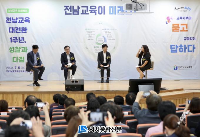 Àü¶ó³²µµ±³À°Ã»(±³À°°¨ ±è´ëÁß)ÀÌ ÁÖ¹ÎÁ÷¼± 4±â ±è´ëÁß ±³À°°¨ ÃëÀÓ 1ÁÖ³âÀ» ¸Â¾Æ 7¿ù 5ÀÏ(¼ö) Àü¶ó³²µµ±³À°Ã»±³À°¿¬±¸Á¤º¸¿ø¿¡¼ ¸¶·ÃÇÑ ¡®Àü³²±³À° ´ëÅä·Ðȸ¡¯ Âü¿©ÀÚµéÀº Àü³²±³À° ´ëÀüȯ Á¤Ã¥ ½ÇÇö °úÁ¤¿¡¼ ±³À°°øµ¿Ã¼µéÀÇ ÀÇ°ß ¼ö·Å°ú ¹Ý¿µÀÌ Áß¿äÇÏ´Ù´Â µ¥ ÇѸñ¼Ò¸®¸¦ ³Â´Ù.