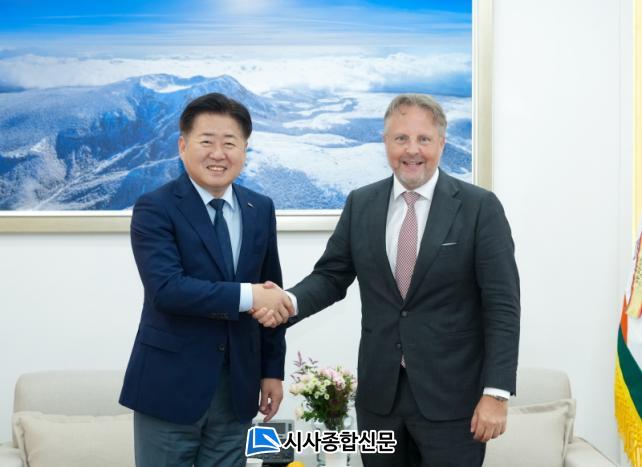 ÀÌ¾î ¿Ã¸µ ´ë»ç´Â Á¦ÁÖ ¼ö¼ÒÆ÷·³¿¡ µ§¸¶Å©ÀÇ ±âÈÄ¿¡³ÊÁö À¯Æ¿¸®Æ¼ Àå°ü, Áö¹æÁ¤ºÎ ¹× ±Û·Î¹ú ±â¾÷µé°ú ÇÔ²² Âü¼®ÇÏ°Ú´Ù°í ¾à¼ÓÇϸé¼, ¡°±×¸°¼ö¼Ò ±Û·Î¹ú Çãºê ±¸Ãà Á¤Ã¥À» ÃßÁøÇÏ´Â Á¦ÁÖµµ¿Í µ§¸¶Å© °£ ÆÄÆ®³Ê½ÊÀ» ÅëÇØ ¼ö¼Ò °æÁ¦ ºÐ¾ß¿¡¼ µ¿¹Ý ¼ºÀåÀ» À̷ﳪ°¡ÀÚ¡±°í È´äÇß´Ù.
