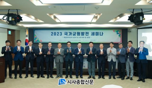 ¡®Æ¯º°ÀÚÄ¡µµÀÇ ¼º°ú ¹× ³ª¾Æ°¡¾ß ÇÒ ¹æÇ⡯À̶ó´Â ÁÖÁ¦·Î ¿¸° À̳¯ Çà»ç¿¡´Â ¿À¿µÈÆ Áö»ç, ¿ìµ¿±â ±¹°¡±ÕÇü¹ßÀüÀ§¿øÀå, ±èµ¿ÈÆ Çѱ¹±âÀÚÇùȸÀå, ¼ÛÀçÈ£ ±¹È¸ÀÇ¿øÀ» ºñ·ÔÇØ ±ÕÇü¹ßÀü °ü·Ã Àü¹®°¡ µî 30¿©¸íÀÌ Âü¼®Çß´Ù.