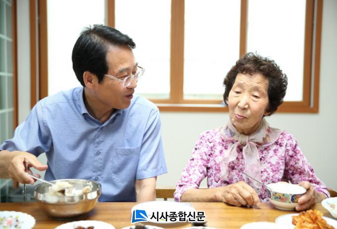 À̳¯ °Áø¿ø ±º¼ö´Â °ÁøÀ¾»ç¹«¼Ò 3Ãþ¿¡ ¸¶·ÃµÈ Á¶¸®½Ç¿¡¼ ¼Õ¼ö »ï°èÅÁÀ» Æ÷ÀåÇÑ ÈÄ, °ÁøÀ¾¿¡¼ Ȧ·Î ±â°ÅÇϰí ÀÖ´Â 80´ë À±¸ð ¾î¸£½ÅÀ» ã¾Æ Àü´ÞÇß´Ù.
