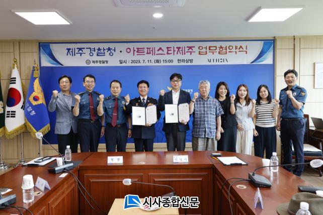 ¾÷¹«Çù¾à½Ä¿¡´Â ÀÌ»ó·ü Á¦ÁÖ°æÂûûÀå°ú ¹Ú¸í¼ Çѱ¹Àü½ÃÁ¤º¸ ´ëÇ¥ µî °ü°èÀÚ°¡ Âü¼®ÇÑ °¡¿îµ¥, Á¦ÁÖ°æÂûû °¶·¯¸®¿¡¼ ¹Ì¼ú ÀÛǰÀ» Àü½ÃÇϰí, ÆÇ¸Å ±Ý¾×ÀÇ ÀϺθ¦ »çȸÀû ¾àÀÚ¿Í ¹üÁËÇÇÇØÀڵ鿡°Ô ±âºÎÇϰí, Áö¼ÓÀûÀÎ ÀÛǰ Àü½Ã¸¦ ÅëÇØ µµ¹Î°ú °æÂû Á÷¿øµé¿¡°Ô ´Ù¾çÇÑ ¹Ì¼ú ¹®È ÇâÀ¯ ±âȸ¸¦ Á¦°øÇϱâ·Î ¶æÀ» ¸ð¾Ò´Ù.