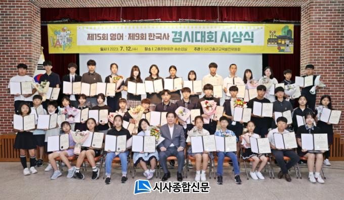 ÃʵîÇб³ 4ÇгâºÎÅÍ °íµîÇб³ 2ÇгâÀ» ´ë»óÀ¸·Î ½Ç½ÃÇÑ À̹ø °æ½Ã´ëȸ¿¡¼´Â ¿µ¾î, Çѱ¹»ç °¢ Çг⺰ ÃÖ¿ì¼ö, ¿ì¼ö, Àå·Á ÃÑ 48¸íÀÌ ¼±Á¤µÇ¾î, (»ç)°íÈﱺ±³À°¹ßÀüÀ§¿øÈ¸ ÀÌ»çÀå »óÀåÀ» ¹Þ¾Ò´Ù.