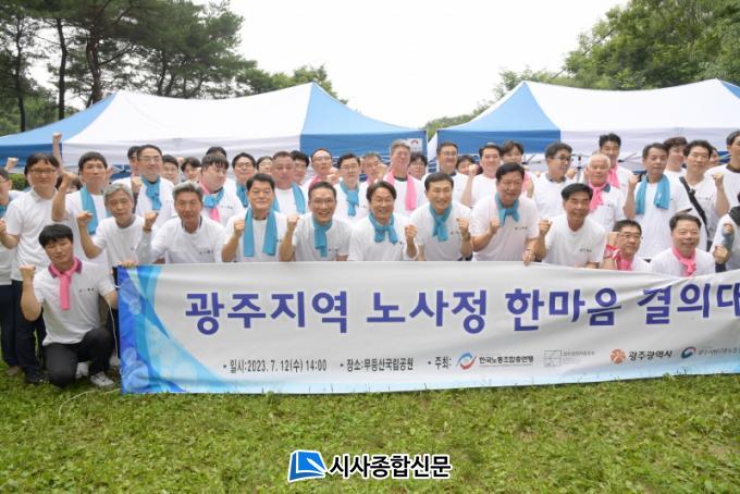±¤ÁÖ±¤¿ª½Ã(½ÃÀå °±âÁ¤)¿Í Çѱ¹³ëÃѱ¤ÁÖº»ºÎ, ±¤Áְ濵ÀÚÃÑÇùȸ, ±¤ÁÖÁö¹æ°í¿ë³ëµ¿Ã»´Â 12ÀÏ ¿ÀÈÄ 2½Ã ¹«µî»ê±¹¸³°ø¿ø Áõ½É»ç ÀÔ±¸¿¡¼ ¡®ÇѸ¶À½ °áÀÇ´ëȸ¡¯¸¦ ¿°í ³ë»ç»ó»ýÇù¾àÀ» ü°áÇß´Ù.