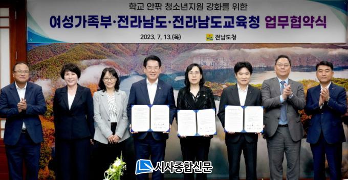 | ±è¿µ·Ï Àü¶ó³²µµÁö»ç°¡ 13ÀÏ ¿ÀÈÄ Àü³²µµÃ» Á¢°ß½Ç¿¡¼ û¼Ò³âÁ¤Ã¥ ºÐ¾ßÀÇ Çù·Âü°è ±¸ÃàÀ» °ÈÇϰí û¼Ò³âµéÀÇ °Ç°ÇÑ ¼ºÀåÁö¿øÀ» À§ÇÑ ¡®Àü³²µµ-¿©¼º°¡Á·ºÎ-Àü³²±³À°Ã» ¾÷¹«Çù¾à(MOU)¡¯À» Çϰí ÀÖ´Ù.(¿ÞÂʺÎÅÍ ±è¿µ·Ï Àü¶ó³²µµÁö»ç, ±èÇö¼÷ ¿©¼º°¡Á·ºÎÀå°ü, ±è´ëÁß Àü¶ó³²µµ±³À°°¨) |