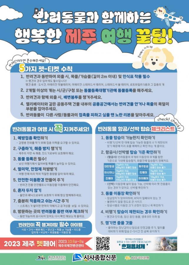 Á¦ÁÖµµ´Â ÈÞ°¡Ã¶À» ¸Â¾Æ ¼º¼÷ÇÑ ¹Ý·Á¹®È Á¶¼ºÀ» À§ÇØ ¡®¹Ý·Áµ¿¹°°ú ÇÔ²²ÇÏ´Â ÇູÇÑ Á¦ÁÖ ¿©Ç࡯ Ä·ÆäÀÎÀ» ÃßÁøÇÑ´Ù. À̹ø È«º¸ Ä·ÆäÀÎÀº ÈÞ°¡Áö¿¡¼ ÁöÄѾßÇÒ ÆêƼÄÏ ¼öÄ¢, ¿©Çà ½Ã ¹Ý·ÁÀÎÀÌ Ã¬°Ü¾ßÇÒ Çʼö Ç׸ñ, ¹Ý·Áµ¿¹° Ç×°ø/¼±¹Ú ž½Â üũ¸®½ºÆ® µîÀ» ´ã¾Æ 7¿ùºÎÅÍ 9¿ù±îÁö Á¦ÁÖ°ü±¤°ø»ç, KB±¹¹ÎÀºÇà°ú ÇÔ²² ÁýÁß È«º¸ÇØ ³ª°¡°í ÀÖ´Ù.