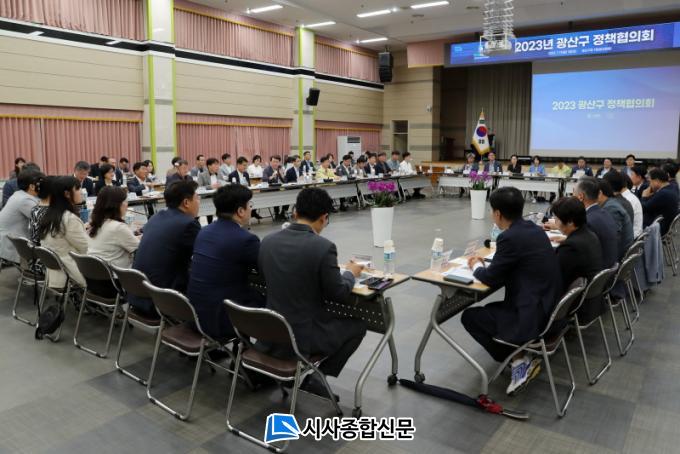 À̳¯ Á¤Ã¥ÇùÀÇȸ¿¡´Â ¹Úº´±Ô ±¤»ê±¸Ã»Àå, ±¤»ê±¸ ÁÖ¿ä °£ºÎ °ø¹«¿øµé°ú ÀÌ¿ëºó ±¹È¸ÀÇ¿ø, ¼Û³²¼ö ±¤»êÀ» Áö¿ªÀ§¿øÀå, ½Ã‧±¸ÀÇ¿ø µî ±¤»ê±¸ °©‧À» Áö¿ªÀ§¿øÈ¸ ÁÖ¿ä ´çÁ÷ÀÚ µî 50¿© ¸íÀÌ Âü¼®Çß´Ù.