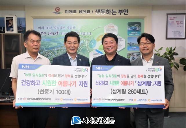 ±ÇÀÍÇö ±º¼ö¿Í ¹Úº´Ã¶ ³ëÁ¶À§¿øÀå, ±è»ïÇü ÁöºÎÀå, ±èÁ¾¼ö ºÎ¾ÈÁö¿ªÀÚȰ¼¾ÅÍÀåµîÀÌ Âü¼®ÇÑ °¡¿îµ¥ °³ÃÖµÈ À̹ø Àü´Þ½ÄÀº ±â³ª±ä À帶¿Í ¹«´õÀ§·Î ÀÎÇØ ¸ö°ú ¸¶À½ÀÌ ÁöÄ£ ³óÃÌÁö¿ª ¾î¸£½Å°ú ¼Ò¿ÜµÈ ÀÌ¿ôµé¿¡°Ô °Ç°ÇÏ°í ½Ã¿øÇÑ ¿©¸§³ª±â¿¡ µµ¿òÀ» ÁÖ°íÀÚ ¸¶·ÃµÆ´Ù.