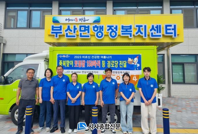 ¾î¸£½Å ¿©¸§³ª±â Áö¿ø»ç¾÷Àº K-water Àü³²¼³²±ÇÁö»ç(Áö»çÀå °Ã»Áø)ÀÇ ÈÄ¿øÀ¸·Î ÃßÁøµÇ¾ú´Ù. ºÎ»ê¸éÀº ¸Å³â À¯µÎ³¯, »ïº¹ µîÀÇ Àý±â¿¡¡®¾î¸£½Å ¿©¸§³ª±â »ç¾÷¡®À» ÃßÁøÇÔÀ¸·Î½á ¾î¸£½ÅµéÀÇ °Ç°À¯Áö ¹× ÁõÁø¿¡ ±â¿©Çϰí ÀÖ´Ù. ¶ÇÇÑ, ¾î¸£½Åµé¿¡°Ô Æø¿° ´ëºñ ³í¹ç ÀÛ¾÷ ÀÚÁ¦¿Í ¿ÜÃ⠽à ¾ç»ê»ç¿ë, Æø¿ì ¹ß»ý ½Ã ¾ÈÀüÇÑ °÷À¸·Î ´ëÇÇÇÏ´Â µî ¾ÈÀü¼öÄ¢µµ Àü´ÞÇÏ¿´´Ù.