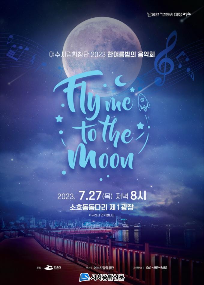 | ¿©¼ö½Ã¸³ÇÕâ´Ü, ¡®ÇÑ¿©¸§ ¹ãÀÇ À½¾Çȸ¡¯ °³ÃÖ Àú³á 8½Ã ¼ÒÈ£µ¿µ¿´Ù¸® Á¦1±¤À塦¿©¼ö¹ã¹Ù´Ù¿Í ÇÔ²² ¡®Fly me to the moon!¡¯ |