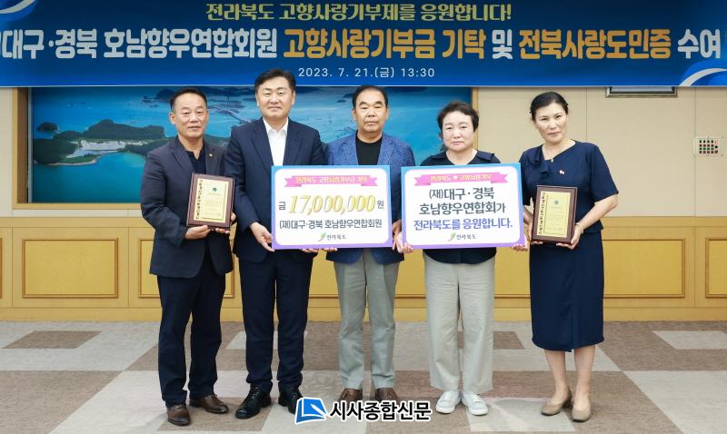 µµ´Â °íÇâ»ç¶û±âºÎÀÚ¿¡°Ô ¹ß±ÞµÇ´Â¡®ÀüºÏ»ç¶ûµµ¹ÎÁõ*¡¯À» Àü´ÞÇϰí, ±âºÎ µ¿Âü È®»ê¿¡ ¾ÕÀå¼ÁØ¡®´ë±¸¡¤°æºÏ È£³²Çâ¿ì¿¬ÇÕȸ¡¯¿¡ °¨»çÆÐ¸¦ ¼ö¿©ÇÏ´Â µî Çâ¿ìµéÀÇ ¶ß°Å¿î ÀÀ¿ø¿¡ È´äÇß´Ù.
