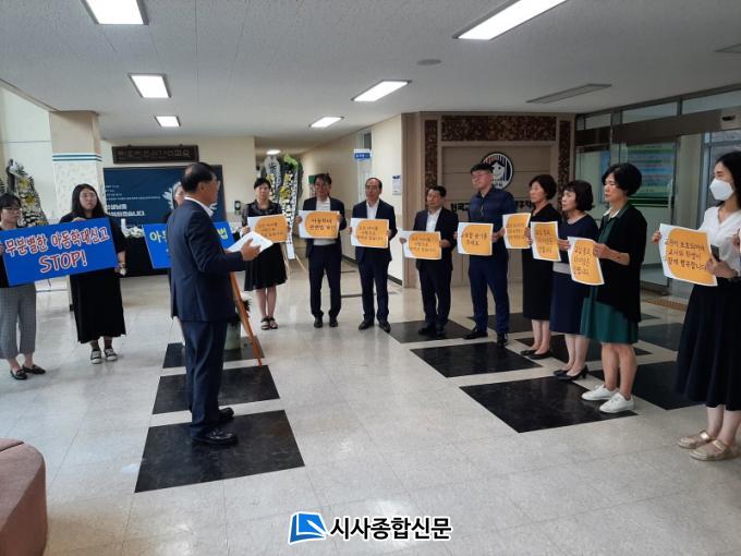 ±¤ÁÖÁö¿ª À¯¡¤ÃÊ¡¤Áߵ(¿ø)Àåȸ´Â Áö³ 6¿ù 22ÀÏ ±âÀÚȸ°ßÀ» °®°í ¡°ÇöÀç ±³À°ÇöÀå¿¡¼ Çб³ÀÇ »ýȰ±ÔÁ¤°ú ÇÐ±Þ ¼öÄ¢¿¡ ÀǰÅÇÑ Á¤´çÇÑ ±³À°È°µ¿°ú »ýȰÁöµµÁ¶Â÷ ¾Æµ¿Çдë·Î ½Å°íµÇ¸ç, ½Î¿òÇÏ´Â ÇлýµéÀ» ¶¼¾î³»´Â °úÁ¤¿¡¼ ±³»ç°¡ °úµµÇÑ ÈûÀ» ½è´Ù´Â °Í¸¸À¸·Î ¾Æµ¿Çдë·Î ½Å°íµÇ´Â ¹«°í¼º ÇÇÇØ ±³¿øµéÀÌ ¿©ÀüÈ÷ ¹ß»ýÇϰí ÀÖ´Ù.¡±¸ç Á¤ºÎ¿¡ ±Ùº»Àû °³¼±Ã¥ ¸¶·ÃÀ» Ã˱¸ÇÑ ¹Ù ÀÖ´Ù.