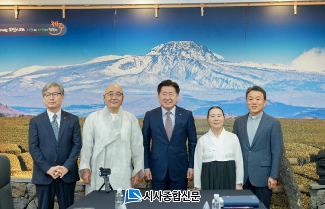 Á¦ÁÖÁ¾±³ÁöµµÀÚÇùÀÇȸ¿¡¼´Â °Çü¹Î ½ÅºÎ(õÁÖ±³), ±èÁö¿¬ ±³¹«(¿øºÒ±³), ÀÌ»ó±¸ ¸ñ»ç(±âµ¶±³), ¼ºÃµ½º´Ô(ºÒ±³), Á¶Àº¼º »ç¹«±¹ÀåÀÌ Âü¼®ÇßÀ¸¸ç, Á¦ÁÖµµ Ãø¿¡¼´Â ¿À¿µÈÆ Áö»ç¿Í ±âȹÁ¶Á¤½ÇÀå, ¹®ÈüÀ°±³À°±¹Àå ¹× °øÇ×È®ÃæÁö¿ø´ÜÀåÀÌ ÀÚ¸®¸¦ ÇÔ²² Çß´Ù.