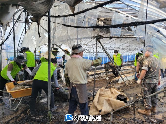 À̹ø º¹±¸ Áö¿øÀº Áö³ 24ÀÏ ¹ß»ýÇÑ ÈÀç·Î ºñ´ÒÇϿ콺 2µ¿°ú ¾ç¾×½Ã¼³ µîÀÌ ¼Ò½ÇµÅ µµ¿òÀÌ Àý½ÇÈ÷ ÇÊ¿äÇÑ »óȲ¿¡¼ ³óÇùÀü³²Áö¿ªº»ºÎ¿Í ´ëÀü¸é¿¹ºñ±º¸é´ë µî 20¿© ¸íÀÌ ³ª¼ ÈÀç Æó±â¹° ó¸®¿Í ÁÖº¯ Á¤¸® µî ÇÇÇØº¹±¸¸¦ Áö¿øÇÏ¸ç ¾î·Á¿òÀ» ³ª´³´Ù.