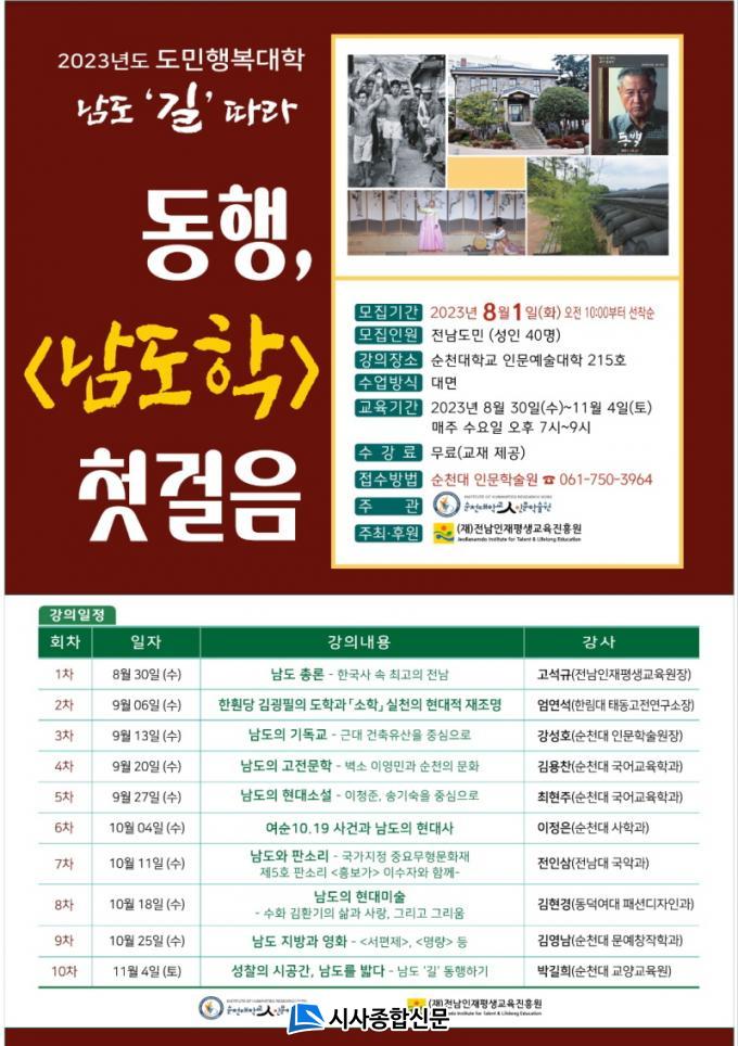 °Á´ ¿À´Â 8¿ù 30ÀÏ °í¼®±Ô Àü³²ÀÎÀçÆò»ý±³À°ÁøÈï¿øÀå(Àü ¸ñÆ÷´ë ÃÑÀå)ÀÇ ¡®³²µµ ÃÑ·Ð: Çѱ¹»ç ¼Ó ÃÖ°íÀÇ Àü³²¡¯ °ÀǸ¦ ½ÃÀÛÀ¸·Î 11¿ù±îÁö ¸ÅÁÖ ¼ö¿äÀÏ¿¡ ³²µµ Áö¿ªÀÇ ¹®ÇÐ, ¿¹¼ú, ¿ª»ç, öÇÐ Àü¹ÝÀ» ¼Ò°³ÇÑ´Ù. ¿ÃÇØ´Â ¿¹³â¿¡ ºñÇØ ³²µµÀÇ ¡®¹®È¿Í ¿¹¼ú¡¯À» ´õ dz¼ºÇÏ°Ô ´Ù·ê ¿¹Á¤ÀÌ´Ù.