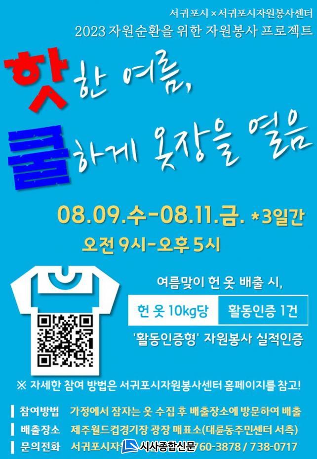 Âü¿©¸¦ Èñ¸ÁÇÏ´Â ¼±ÍÆ÷½Ã¹ÎÀº °¡Á¤¿¡¼ ¹ß»ýÇÏ´Â Çå ¿Ê(¹èÃâ°¡´É ǰ¸ñ: Æ÷½ºÅÍ ÂüÁ¶)À» ¸ð¾Æ 8¿ù 9ÀϺÎÅÍ 3Àϰ£ ¡®Á¦ÁÖ¿ùµåÄŰæ±âÀå ±¤Àå Á¾Çվȳ»¼¾ÅÍ(´ë·ûµ¿Áֹμ¾ÅÍ ¼Ãø)¡¯·Î °¡Áö°í ¿À¸é µÈ´Ù. ¹èÃâ °¡´É ½Ã°£Àº ¿ÀÀü 9½Ã ~ ¿ÀÈÄ 5½Ã±îÁöÀÌ´Ù.