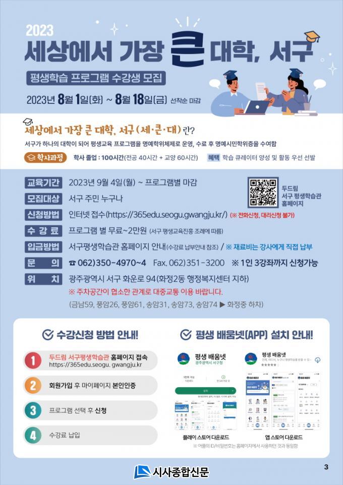 ¼¼Å«´ë¶õ ¡®¼±¸¸¦ ÇϳªÀÇ ´ëÇÐÀ¸·Î ÀνÄ, °ü³»¿¡¼ ¿î¿µÇÏ´Â ±³À° ÇÁ·Î±×·¥À» ü°èÀûÀ¸·Î ¿î¿µ‧°ü¸®ÇÔÀ¸·Î½á ÁֹεéÀÇ Áö¼ÓÀû ¼ºÀåÀ» Áö¿øÇÏ´Â ¼±¸ÀÇ Æò»ýÇнÀ ºê·£µå »ç¾÷¡¯À¸·Î °úÁ¤º° ÇÁ·Î±×·¥ Âü¿© ÈÄ ÀÏÁ¤ Á¶°Ç(Àü°ø°ú¸ñ 40½Ã°£, ±³¾ç°ú¸ñ 60½Ã°£)À» ¼ö·áÇÏ¸é ¸í¿¹½Ã¹ÎÇÐÀ§ÁõÀ» ¹ÞÀ» ¼ö ÀÖ´Ù.