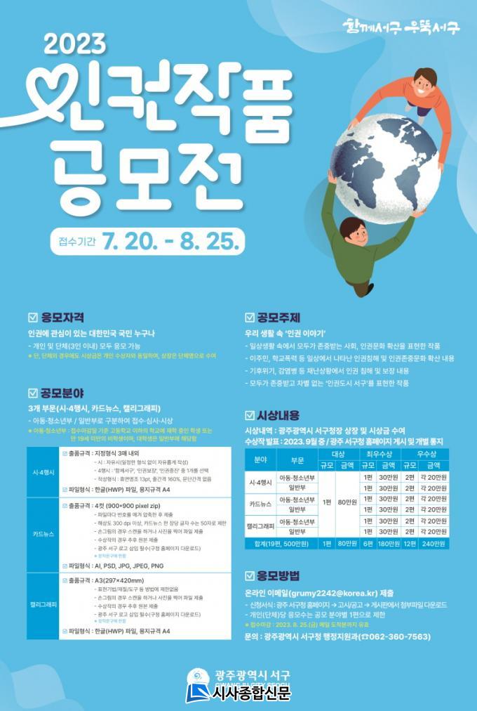 °ø¸ð ºÐ¾ß´Â ¡ã½Ã(4Çà½Ã) ¡ãÄ«µå´º½º ¡ã͏®±×·¡ÇÇ ÃÑ 3°³ ºÐ¾ßÀ̸ç, ÁÖÁ¦´Â ¡ãÀÏ»ó»ýȰ ¼Ó¿¡¼ ¸ðµÎ°¡ Á¸Áß¹Þ´Â »çȸ, Àαǹ®È È®»êÀ» Ç¥ÇöÇÑ ÀÛǰ ¡ãÀÌÁÖ¹Î, Çб³Æø·Â µî Àϻ󿡼 ³ªÅ¸³ ÀαÇÄ§ÇØ ¹× ÀαÇÁ¸Áß¹®È È®»ê ³»¿ë ¡ã±âÈÄÀ§±â, °¨¿°º´ µî Àç³»óȲ¿¡¼ ÀαÇÄ§ÇØ ¹× ÀαǺ¸Àå ³»¿ë ¡ã¸ðµÎ°¡ Á¸Áß ¹Þ°í Â÷º° ¾ø´Â ¡®Àαǵµ½Ã ¼±¸¡¯¸¦ Ç¥ÇöÇÑ ³»¿ë µîÀÌ´Ù.