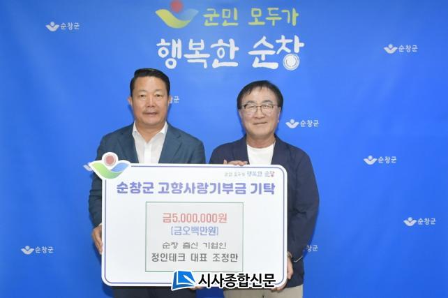 [½Ã»çÁ¾ÇսŹ® = ¿À½ÂÅà ±âÀÚ] ÀüºÏ ¼øÃ¢±º ÃâÇâÀεéÀÌ ¿¬ÀÌ¾î °íÇâ»ç¶û±âºÎ±Ý ÃÖ°í¾×À» ±âºÎÇÏ¸ç ¼øÃ¢»ç¶û ½Çõ¿¡ ¾ÕÀå¼°í ÀÖ´Â °¡¿îµ¥ ¼øÃ¢ Ãâ½Å ±â¾÷ÀÎ Á¤ÀÎÅ×Å© Á¶Á¤¸¸ ´ëÇ¥°¡ ¼øÃ¢±º °íÇâ»ç¶û±âºÎÁ¦ ¿¬°£ ÃÖ°í¾× ±âºÎÀÚ 31È£¿¡ À̸§À» ¿Ã·È´Ù.