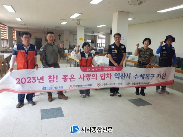 »ç´Ü¹ýÀÎ ÀüÁÖ½ÃÀÚ¿øºÀ»ç¼¾ÅÍ(ÀÌ»çÀå ÃÖÀÌõ)´Â 7¿ù 31Àϰú 8¿ù 1ÀÏ ÀÌÆ²°£ Ưº°Àç³Áö¿ªÀ¸·Î ¼±Æ÷µÈ ÀüºÏ ÀÍ»ê½ÃÀÇ ¼öÇØº¹±¸ÀÛ¾÷¿¡ ±¸½½¶¡À» È기 ±ºÀÎÀ庴 ¹× ÀÚ¿øºÀ»çÀÚ µî 600¿©¸íÀÇ Á¡½É µµ½Ã¶ô Á¦°øÀ» À§ÇØ ¡®IBK Âü! ÁÁÀº »ç¶ûÀÇ ¹äÂ÷¡¯¸¦ Áö¿øÇß´Ù.