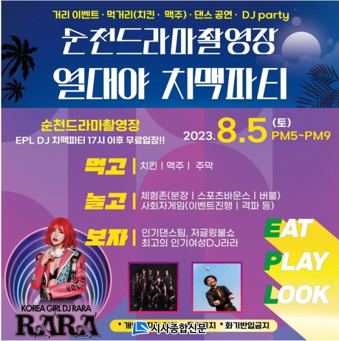 | ¼øÃµ½Ã, 2023¼øÃµµå¶ó¸¶ÃÔ¿µÀå ¿´ë¾ß Ä¡¸ÆÆÄƼ °³ÃÖ Ã¼ÇèÁ¸ ¿î¿µ, °ÝÆÄ¡¤Á¦±âÂ÷±â¿Õ ¼±¹ß, DJÆÄƼ µî ½Å³ª´Â ¿©¸§¹ã |