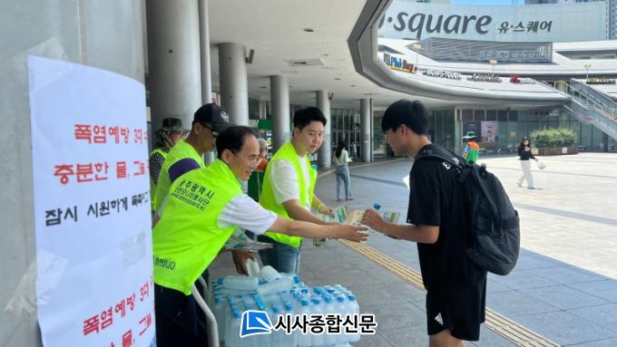 Ä·ÆäÀÎÀº Áö¿ªÀÚÀ²¹æÀç´Ü¿¬ÇÕȸ¿Í ±¤Áֽà ½Ã¹Î¾ÈÀü½Ç °ø¹«¿ø µî 30¿© ¸íÀÌ Âü¿©, ´ÙÁß ÁýÇÕÀå¼ÒÀÎ À¯½ºÄù¾î¸¦ ¿À°¡´Â ½Ã¹ÎÀ» ´ë»óÀ¸·Î ÁøÇàµÆ´Ù. ƯÈ÷ ÇÏ·ç Áß Ã¼°¨¿Âµµ°¡ °¡Àå ³ôÀº ¿ÀÈÄ 2½Ã ¹«´õÀ§·Î ÁöÄ£ ½Ã¹Îµé¿¡°Ô ¾óÀ½»ý¼ö¸¦ ³ª´²ÁÖ¸ç ¿Â¿Áúȯ ¿¹¹æ¿¡ ¼öºÐ °ø±ÞÀÇ Á߿伺À» ¾Ë¸®°í Æø¿° ´ëºñ Çൿ¿ä·ÉÀ» È«º¸Çß´Ù.