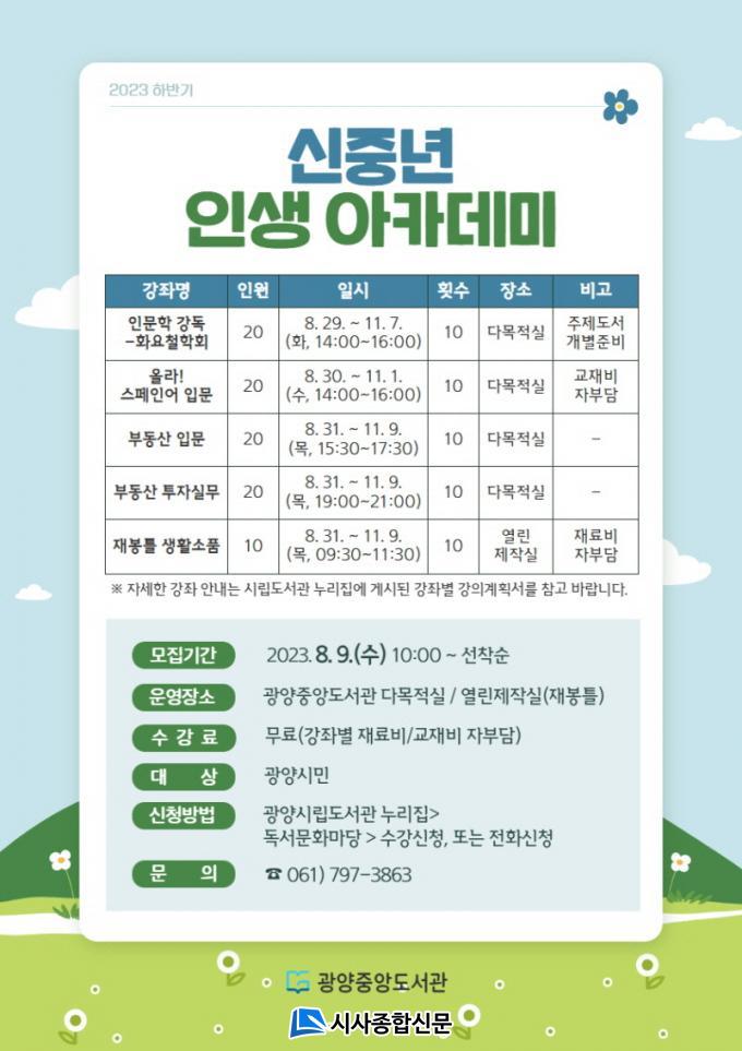 ÇϹݱ⠽ÅÁ߳⠾ÆÄ«µ¥¹Ì´Â ±¤¾ç½Ã °ÅÁÖ ½ÅÁß³âÀ» ´ë»óÀ¸·Î ¿À´Â 8¿ù 29ÀϺÎÅÍ 11¿ù 9ÀϱîÁö ¡ãÀι®ÇÐ °µ¶-È¿äöÇÐȸ ¡ã¿Ã¶ó! ½ºÆäÀξî ÀÔ¹® ¡ãºÎµ¿»ê ÀÔ¹® ¡ãºÎµ¿»ê ÅõÀÚ ½Ç¹« ¡ãÀçºÀƲ »ýȰ¼Òǰ µî ÃÑ 5°³ °Á°¡ ¿î¿µµÈ´Ù.