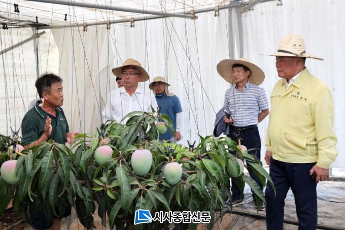 ±è»ê ±º¼ö´Â ¡°¾Æ¿´ë°ú¼ö¿¡ ´ëÇÑ Àû±ØÀûÀÎ À°¼ºÀ¸·Î ±âÈĺ¯È¿¡ ´ëÀÀÇÏ´Â ½Å¼Òµæ ÀÛ¹°À» È®´ëÇØ ³ª°¡°Ú´Ù¡±°í °Á¶Çß´Ù. ¶ÇÇÑ ¹æ¹® Áß¿¡ ³ó¾÷ÀεéÀÇ ¾Ö·Î»çÇ×À» ûÃëÇßÀ¸¸ç, ƯÈ÷ »ý»ê½Ã¼³ Áö¿ø»Ó¸¸ ¾Æ´Ï¶ó ¾Æ¿´ë ³óÀå¿¡¼ »ý»êµÇ´Â Á¦Ç°ÀÇ ½ÃÀå °³Ã´°ú ¼öÀͼº È®º¸¸¦ À§ÇÑ Àû±ØÀûÀÎ Áö¿øÀ» ÅëÇØ ³ó¹ÎµéÀÇ ºÎ´ãÀ» ÁÙÀÌ°í ³ó¾÷ °æ¿µÀÇ ¾ÈÁ¤¼ºÀ» ³ôÀÌ´Â µ¥¿¡ ÁÖ·ÂÇÒ ¿¹Á¤À̶ó°í ¹àÇû´Ù.