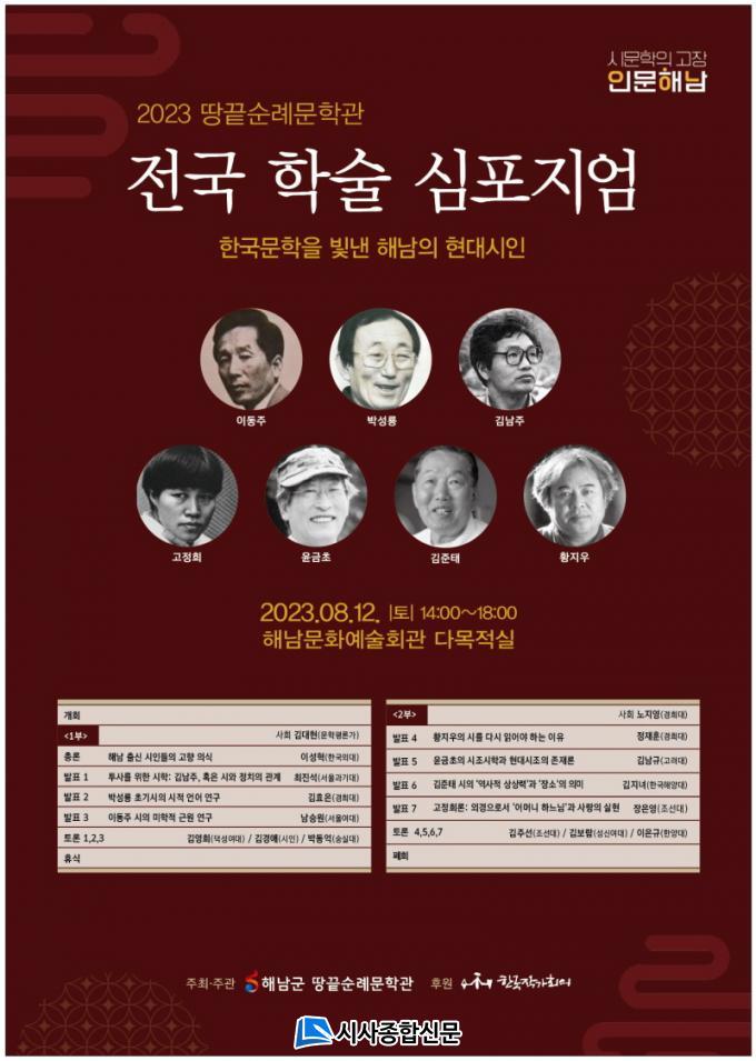 ½ÉÈ£ À̵¿ÁÖ, ³²¿ì ¹Ú¼º·æ, ±è³²ÁÖ, °íÁ¤Èñ, À±±ÝÃÊ, ±èÁØÅÂ, ȲÁö¿ì ½ÃÀÎ µî Çö´ë ½ÃÀεéÀ» ÁÖÁ¦·Î, ÇØ³²ÀÇ ¹®ÇÐÀû Á¤Ã¼¼º°ú ±× È帧À» ÃÑüÀûÀ¸·Î °íÂûÇÏ´Â ¿¬±¸¹ßÇ¥°¡ À̾îÁø´Ù.