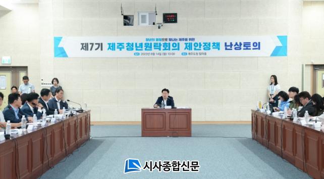 ¡®Á¦7±â û³â¿øÅ¹È¸ÀÇ Á¦¾ÈÁ¤Ã¥ ³»óÅäÀÇ¡¯°¡ 14ÀÏ ¿ÀÀü 10½Ã Á¦ÁÖµµÃ» º»°ü 4Ãþ ޶óȦ¿¡¼ ¿À¿µÈÆ Áö»ç¿Í ±âȹÁ¶Á¤½ÇÀå µî ½Ç±¹ÀåÀ» ºñ·ÔÇØ Á¦7±â û³â¿øÅ¹È¸ÀÇ Ã»³âÀ§¿ø µî 30¿©¸íÀÌ Âü¼®ÇÑ °¡¿îµ¥ °³ÃֵƴÙ.