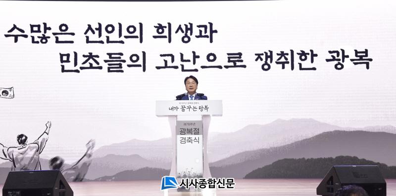 ° ½ÃÀåÀº À̳¯ ½Ãû ´ëȸÀǽǿ¡¼ ¿¸° Á¦78Áֳ⠱¤º¹Àý °æÃà½Ä¿¡ Âü¼®ÇØ ¡®³»°¡ ²Þ²Ù´Â ±¤º¹¡¯À» ÁÖÁ¦·Î °æÃà»ç¸¦ Çϰí, ¿©ÀüÈ÷ °¢ÀÚÀÇ ¡®±¤º¹¡¯À» ¿Ï¼ºÇϰíÀÚ ¾Ö¾²´Â ÀÏÁ¦°Á¦µ¿¿øÇÇÇØÀÚ¿Í ¼ÈÆÀ» ¹ÞÁö ¸øÇÑ µ¶¸³À¯°øÀÚ µîÀ» Á¶¸íÇß´Ù.