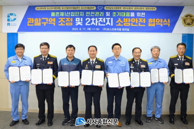 À̳¯ Çù¾à½Ä¿¡´Â Àü³²¼Ò¹æº»ºÎÀåÀ» ºñ·ÔÇÑ 3°³ ½Ã ¼Ò¹æ¼Àå(¿©¼ö¡¤¼øÃµ¡¤±¤¾ç)°ú À²ÃÌÁ¦1»ê¾÷´ÜÁö 4°³ ±â¾÷ü(Æ÷½ºÄÚǻó¿¥, Æ÷½ºÄÚHYŬ¸°¸ÞÅ», Æ÷½ºÄÚÇÊ¹Ù¶ó¸®Æ¬¼Ö·ç¼Ç, Æ÷½ºÄÚ¸®Æ¬¼Ö·ç¼Ç) ´ëÇ¥°¡ Âü¼®Çß´Ù.