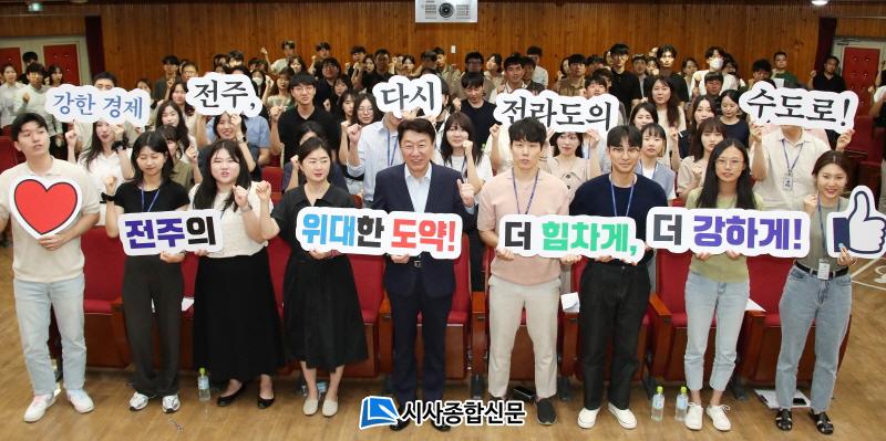 ÇÑÆí, ¿ì¹ü±â ÀüÁÖ½ÃÀåÀº ¡°Ã»³â °ø¹«¿øÀÌ ¿ì¸® ÀüÁÖ½ÃÀÇ ¹Ì·¡ÀÌÀÚ Áß½ÉÀ̸ç, ÀÚÀ¯·Ó°Ô ¼ÒÅëÇÏ°í ´ëÈÇÏ¸ç ¼·ÎÀÇ »ý°¢°ú °¨Á¤À» ÀÌÇØÇÏ´Â ½Ã°£Àº ¿ì¸®¿¡°Ô ¸Å¿ì °ªÁø ½Ã°£ÀÌ µÉ °Í¡±À̶ó¸ç ¡°¾ÕÀ¸·Îµµ ÀþÀº Á÷¿øµé°ú Çã¹°¾ø´Â ¼ÒÅëÀÇ ÀåÀ» ¸¶·ÃÇØ ½ÃÁ¤ ¿î¿µ ¹æÇâ°ú ºñÀü¿¡ ´ëÇØ °øÀ¯ÇØ ³ª°¡°Ú´Ù¡±°í ¸»Çß´Ù.