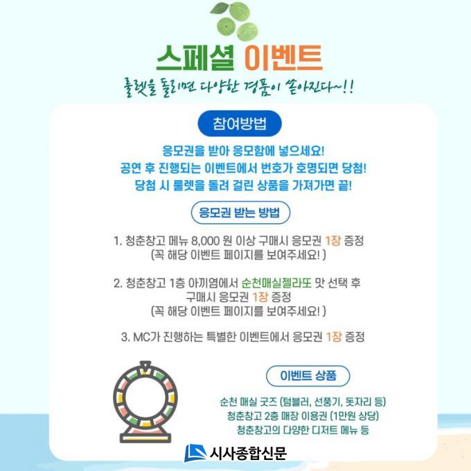 ¼øÃµ½Ã¿¡ µû¸£¸é À̹ø Çà»ç´Â ûÃáâ°í¿¡ ÀÔÁ¡ÇÑ Á©¶ó¶Ç Àü¹®Á¡ ¡®¾Æ³¢¿°(¹Ú¼±Áø・Á¤ºÀÈÆ °øµ¿´ëÇ¥)¡¯ÀÌ ÁÖÃÖÇÏ´Â Çà»ç·Î ¼øÃµÀÇ ´ëÇ¥ ³ó»ê¹° ¸Å½ÇÀÇ ¿ùµîÇÑ ¸À°ú ǰÁúÀ» ³Î¸® ¾Ë¸®°í, ¹«´õ¿î ¿©¸§À» ½Ç³»¿¡¼ ½Ã¿øÈ÷ Áñ±â´Â ÃàÁ¦ÀÇ ÀåÀÌ µÉ ¿¹Á¤ÀÌ´Ù.
