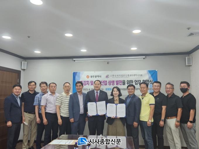 Çù¾à½Ä¿¡´Â ÁÖÀçÈñ ±¤Áֽà °æÁ¦Ã¢¾÷±¹Àå, ±è»óÀç ©ÅÇѱ¹¿Ü½Ä¾÷Áß¾Óȸ ±¤ÁÖ±¤¿ª½ÃÁöȸÀå°ú 5°³ ÀÚÄ¡±¸ÁöºÎ ÀÓ¿ø, ¢ßÇØ´ãÃÌ, ¢ß±èġŸ¿î, ¢ßäÀÚ¿¬, ¢ßÁø¼± µî ±¤ÁÖ±èÄ¡ Á¦Á¶¾÷ü 4°÷ÀÇ ´ëÇ¥°¡ Âü¼®Çß´Ù.