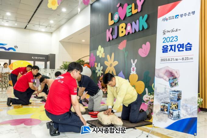 [½Ã»çÁ¾ÇսŹ® = ¿À½ÂÅà ±âÀÚ] ±¤ÁÖÀºÇàÀº 2023³â À»Áö¿¬½À ±â°£ Áß ±¤ÁÖÀºÇà ÀÓÁ÷¿ø ¹× Áö¿ª¹ÎÀ» ´ë»óÀ¸·Î º»Á¡ 1Ãþ ·Îºñ¿¡¼ ÀÀ±Þ»óȲ ¹ß»ý ½Ã ¼ÒÁßÇÑ »ý¸íÀ» ±¸ÇÏ´Â ½ÉÆó¼Ò»ý¼ú(CPR) ±³À°À» ½Ç½ÃÇß´Ù°í ¹àÇû´Ù.