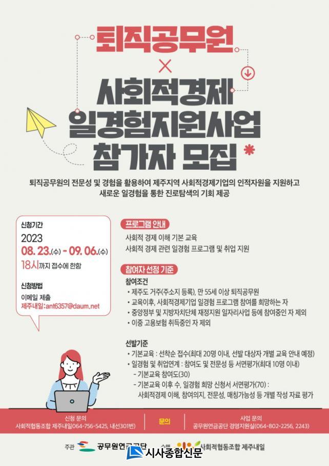 À̹ø Çù¾àÀ» ÅëÇØ °ø¹«¿ø¿¬±Ý°ø´ÜÀº Á¦ÁÖÁö¿ª ÅðÁ÷°ø¹«¿øÀÇ °øÁ÷ Àü¹®¼º°ú °æÇèÀ» Ȱ¿ëÇÏ¿© »çȸÀû°æÁ¦ ±â¾÷¿¡ ÀÎÀûÀÚ¿øÀ» Áö¿øÇϰí, Á¦ÁÖ»çȸÀû°æÁ¦Áö¿ø¼¾ÅÍ´Â Áö¿ª¹®Á¦ ¹ß±¼ ¹× ÇØ°áÀ» À§ÇÑ ¿ª·®°È ±³À°, Çùµ¿Á¶ÇÕÁ¦ÁÖ³»ÀÏÀº »çȸÀû°æÁ¦ ÀÏ-°æÇè ¿¬°è ¹× Ãë¾÷¾Ë¼± ÇÁ·Î±×·¥ µîÀ» ´ã´çÇÒ ¿¹Á¤ÀÌ´Ù.